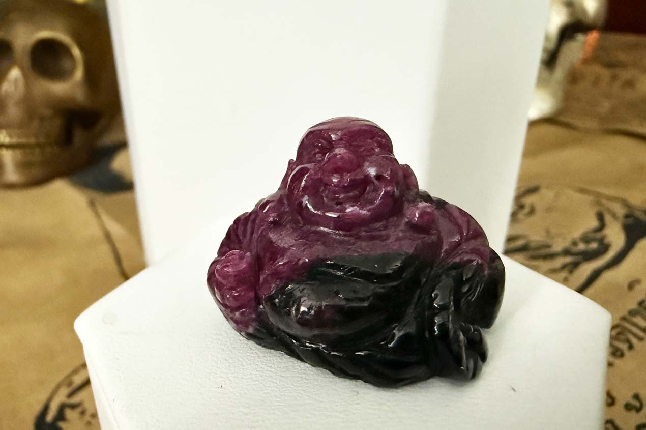 Aunt Nadiene's Thai Carved Ruby on Black Tourmaline Matrix HoTei Buddha