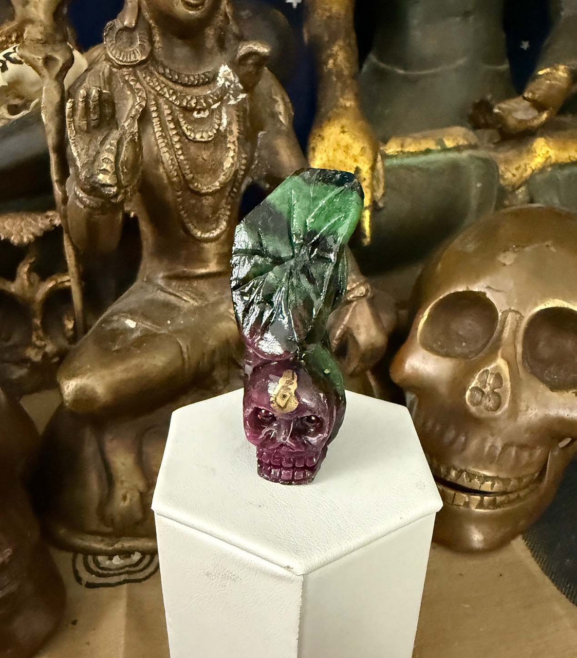 Aunt Nadiene's Thai Carved Ruby in Zoisite, Crystal Skull in Sacred Lotus